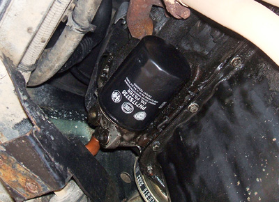 sostituire il filtro dell'olio (a mano o con una chiave a nastro/catena)