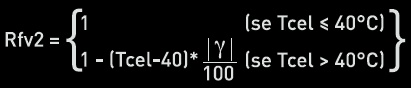 - Rfv2, fattore che tiene conto della perdita di potenza per effetto della temperatura della cella, Tcel, maggiore di 40°C; é calcolato secondo l’espressione seguente: